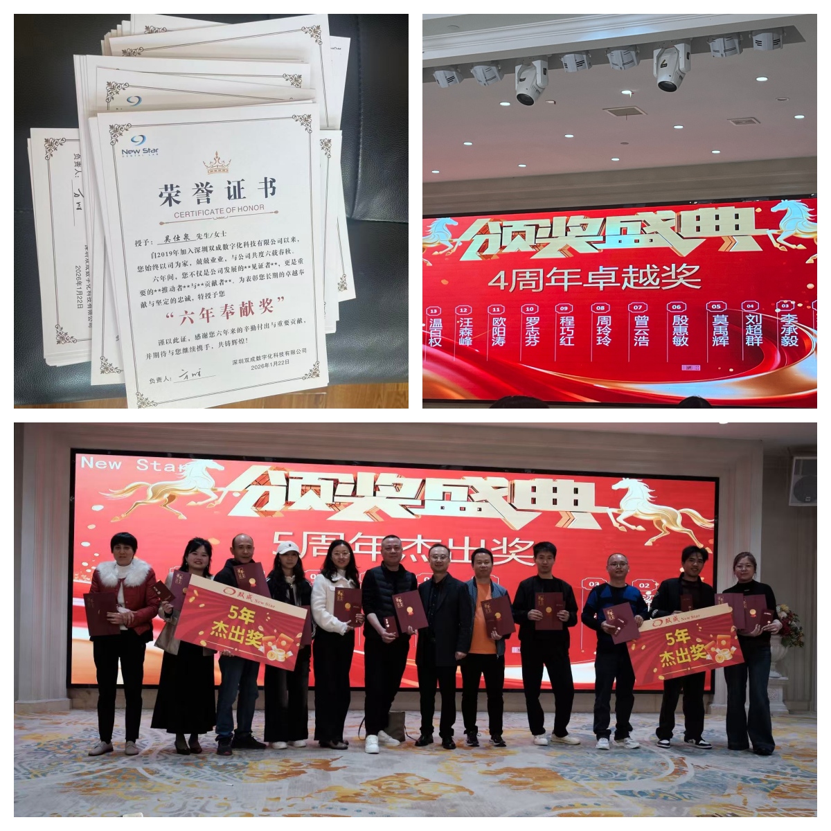 The annual meeting was full of warmth and joy, with three wonderful parts: annual dinner, lucky draw and employee recognition. During the dinner, all colleagues chatted freely, shared the interesting things happened at work, and felt the warmth of New Star family. The lucky draw session brought constant surprises, with various practical gifts making everyone smile happily, which also reflects the company’s care for every team member.